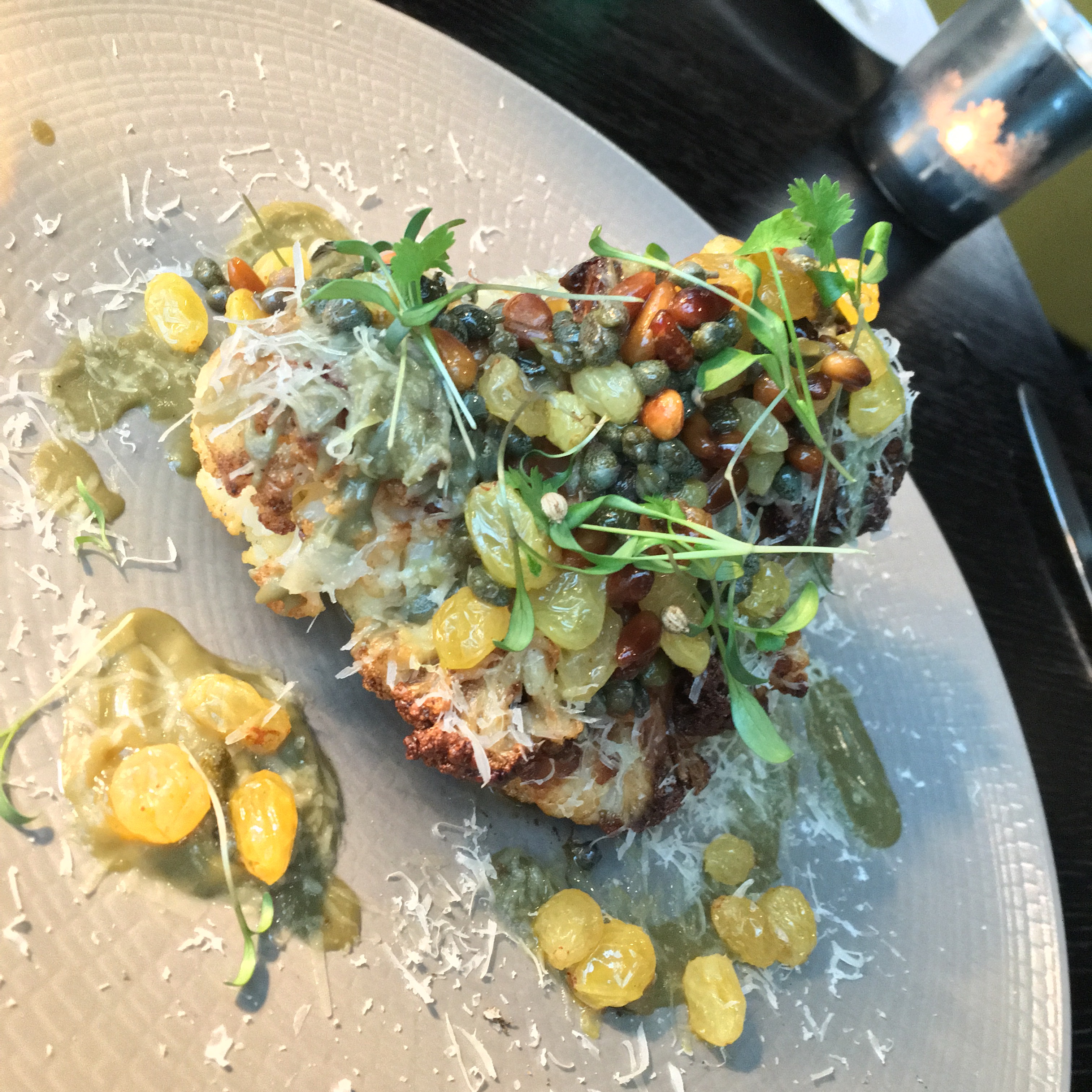 Inspiré par un plat que j’ai pu déguster au Sky Garden à Londres, j’ai réalisé aujourd’hui un chou fleur rôtis aux raisins et aux noix de pecans.