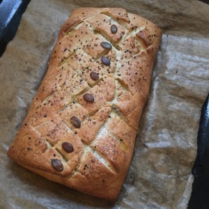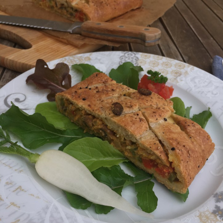 Cette pizza se trouve à mi-chemin entre un Strudel et un calzone. Finalement très facile à réaliser, il est également très pratique pour finir un restant de légumes. Les possibilités de garniture ne sont limitées que par votre imagination ou par votre frigo ! Accompagné par une salade, il fait office d’un repas complet.